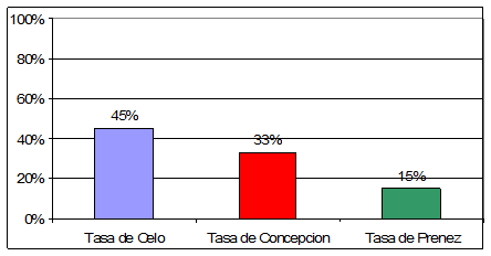 Gráfico 1. Tasa de Celo, Concepción y Preñez, Base de Datos Dairy Comp, 2007.