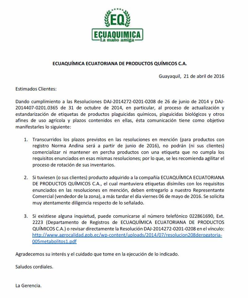 Comunicado Departamento de Registros Ecuaquimica